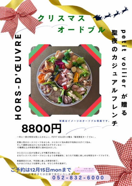 今年のクリスマスはぜひ、ご家族やご友人と【プティヴォワリエの特製オードブル】で楽しいひとときをお過ごしください✨