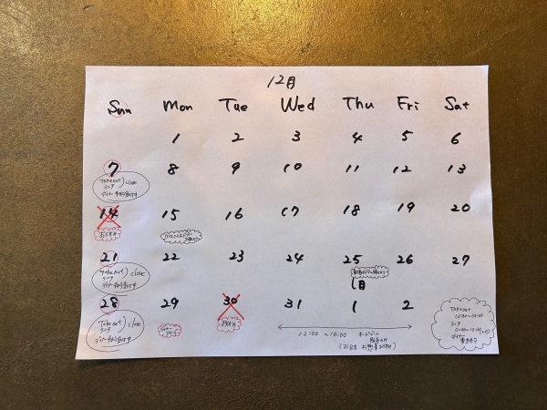 📅 12月の営業カレンダー